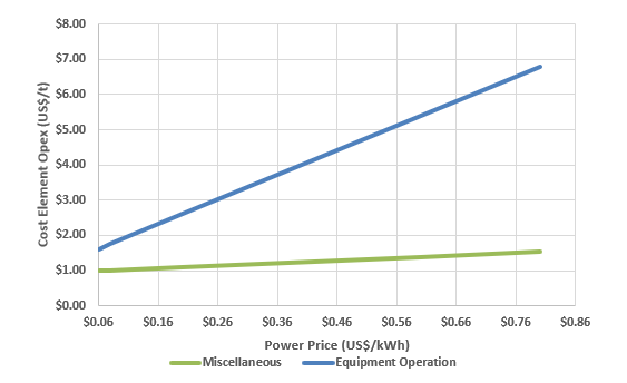 Sensitivity of Equipment and Miscellaneous opex to power prices