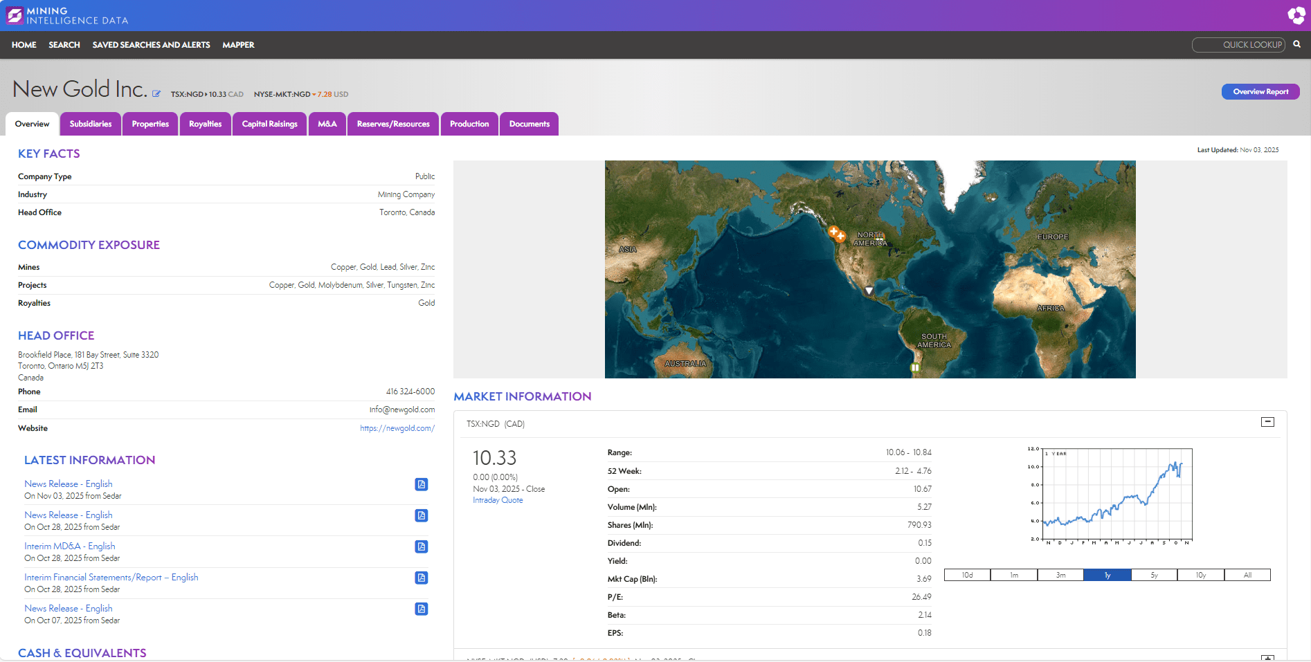 Coeur Mining and New Gold have entered into a definitive agreement that will see Coeur Mining acquire all outstanding shares of New Gold, forming a new senior precious metals company focused entirely on North American operations. The combined company will operate seven active mines across the United States, Canada, and Mexico, with projected 2026 production of 900,000 ounces of gold, 20 million ounces of silver, and 100 million pounds of copper.